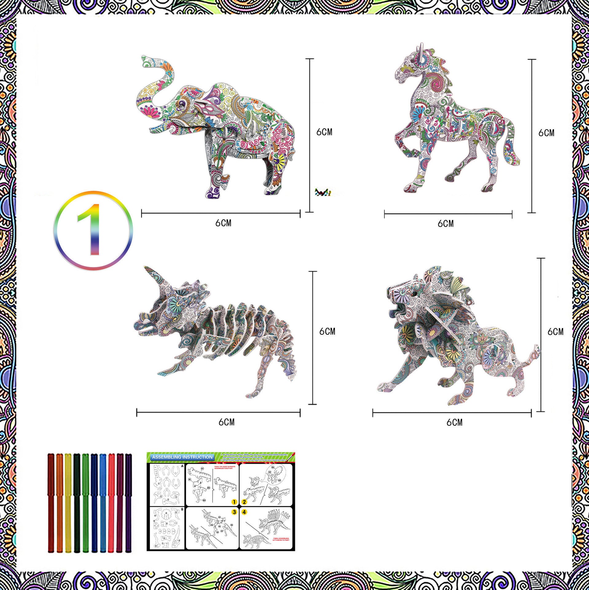 1 Stil: 4 Arten von 3D-Puzzles (Löwe, Dinosaurier, Pferd, Elefant)