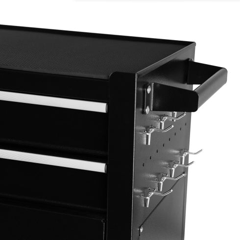 - HIGH CAPACITY. Rolling tool box is equipped with 8 sliding drawers: 2 large, 3 medium & 3 small, 1 top layer, and 1 bottom cabinet, to store tools of different sizes and meet your needs. Each drawer is designed with a liner. Tool chests & cabinets has 8 hooks beside of cabinet, hanging tools. We also provide you with 7 storage boxes.