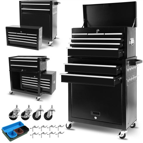 - DURABLE. Tool chest is made of premium steel with powder coating, stable construction, avoids from scratching, denting, and chipping, more durable; classic color. The tool chest with drawers is detachable, can be divided into top tool box and bottom tool cart, with an independent locking system.