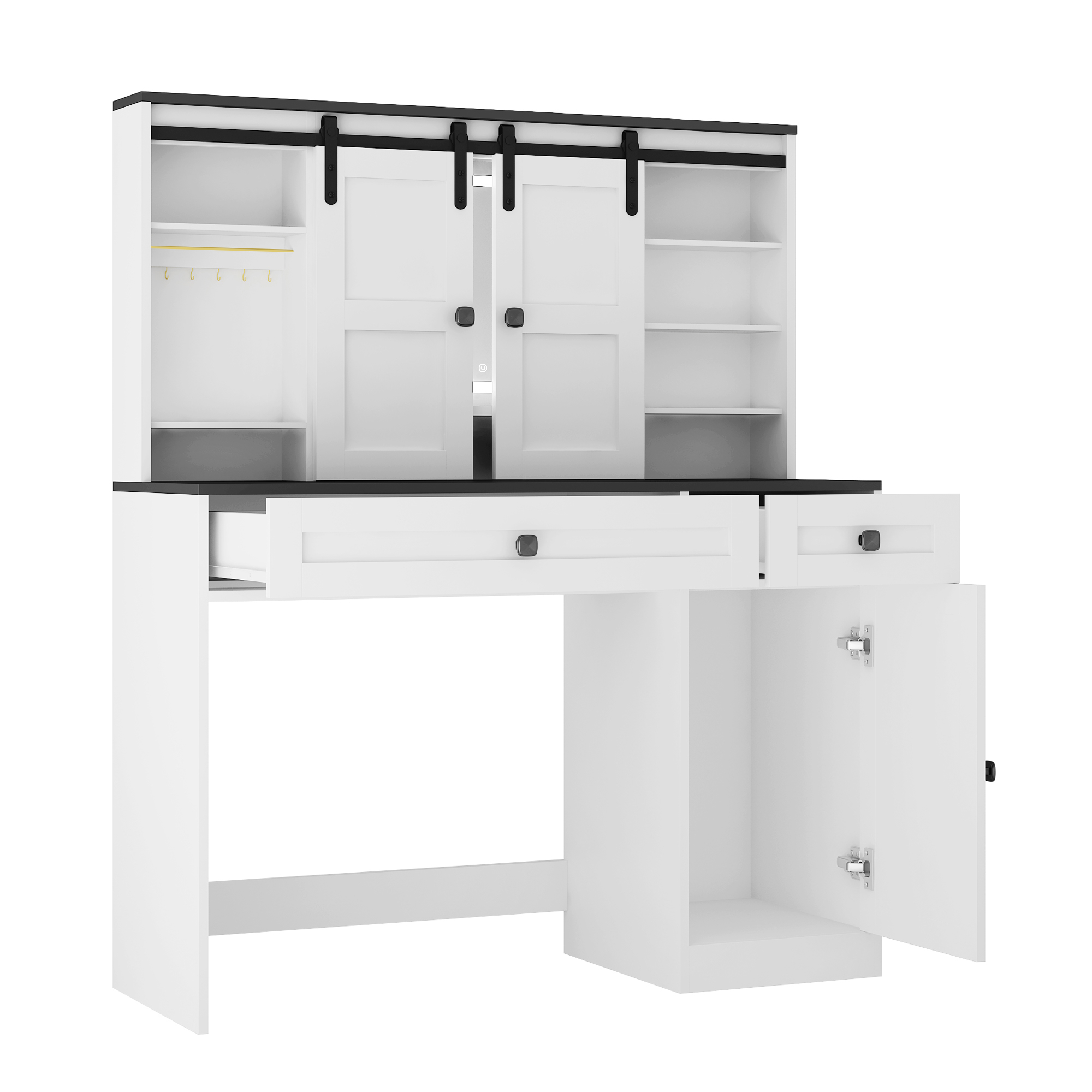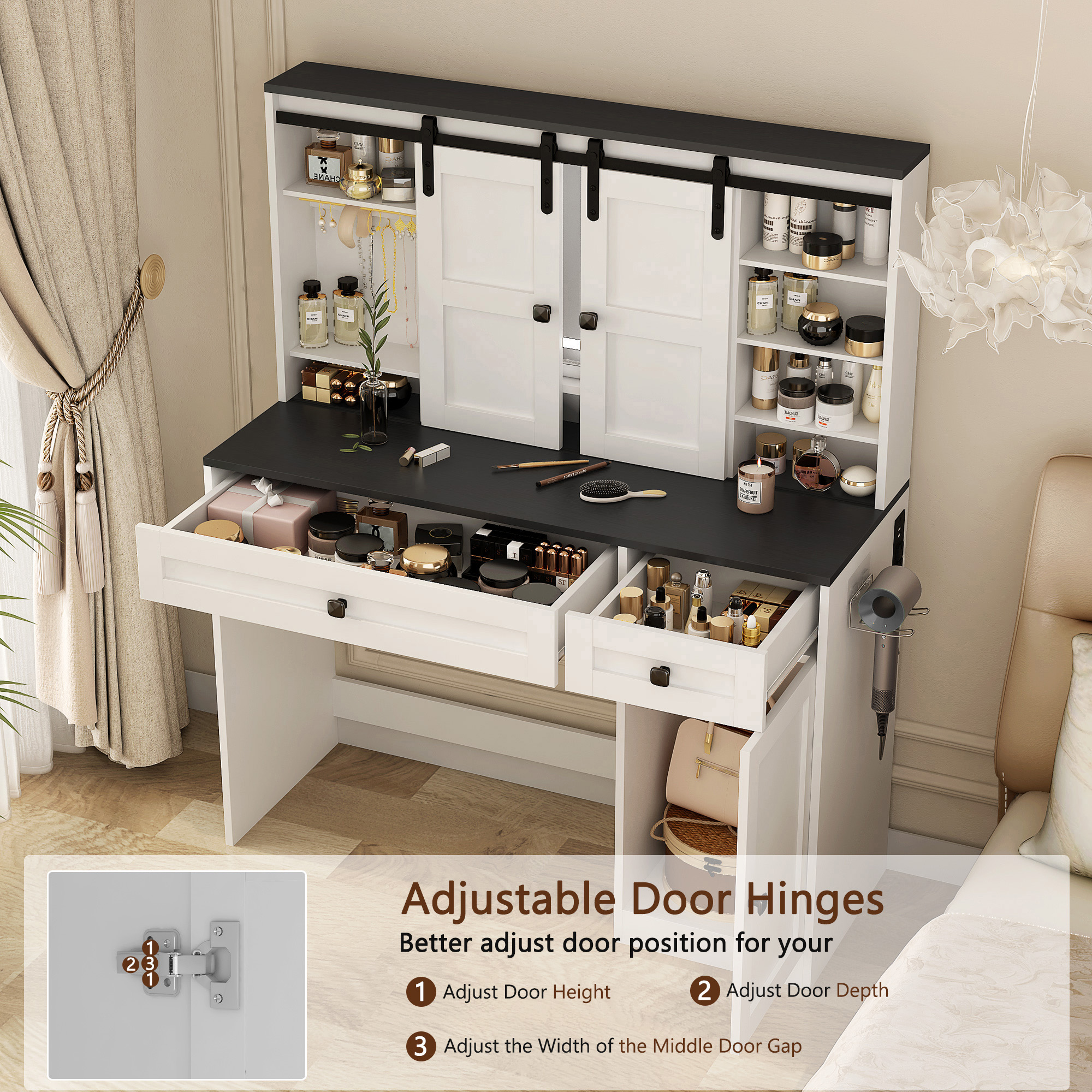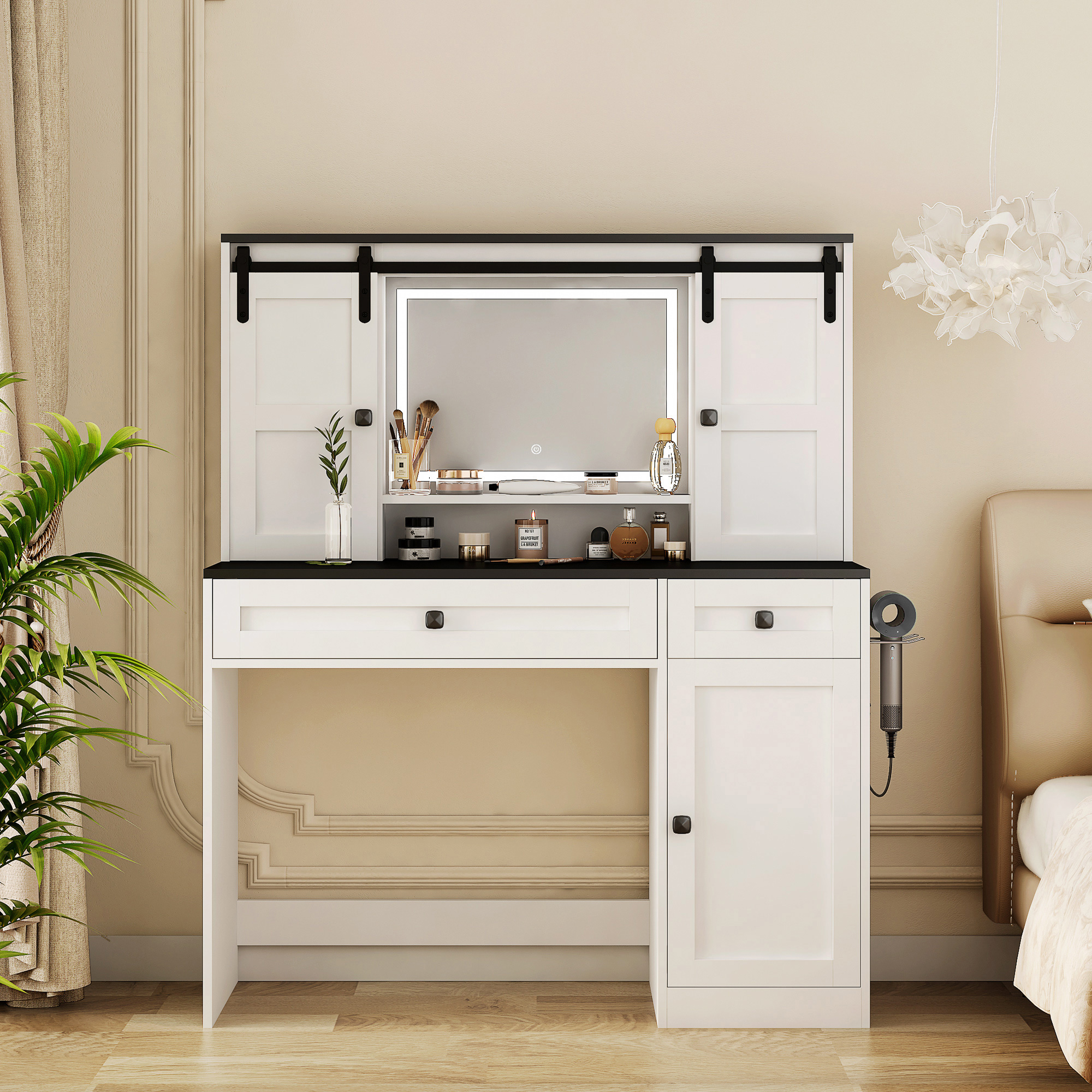 Product Name:Farmhouse Dressing Table Makeup Table, 43" Wide Dressing Table with Lighted Mirror and Makeup Drawer, Large Modern Dressing Table Set with Hair Dryer Holder for Bedroom, White