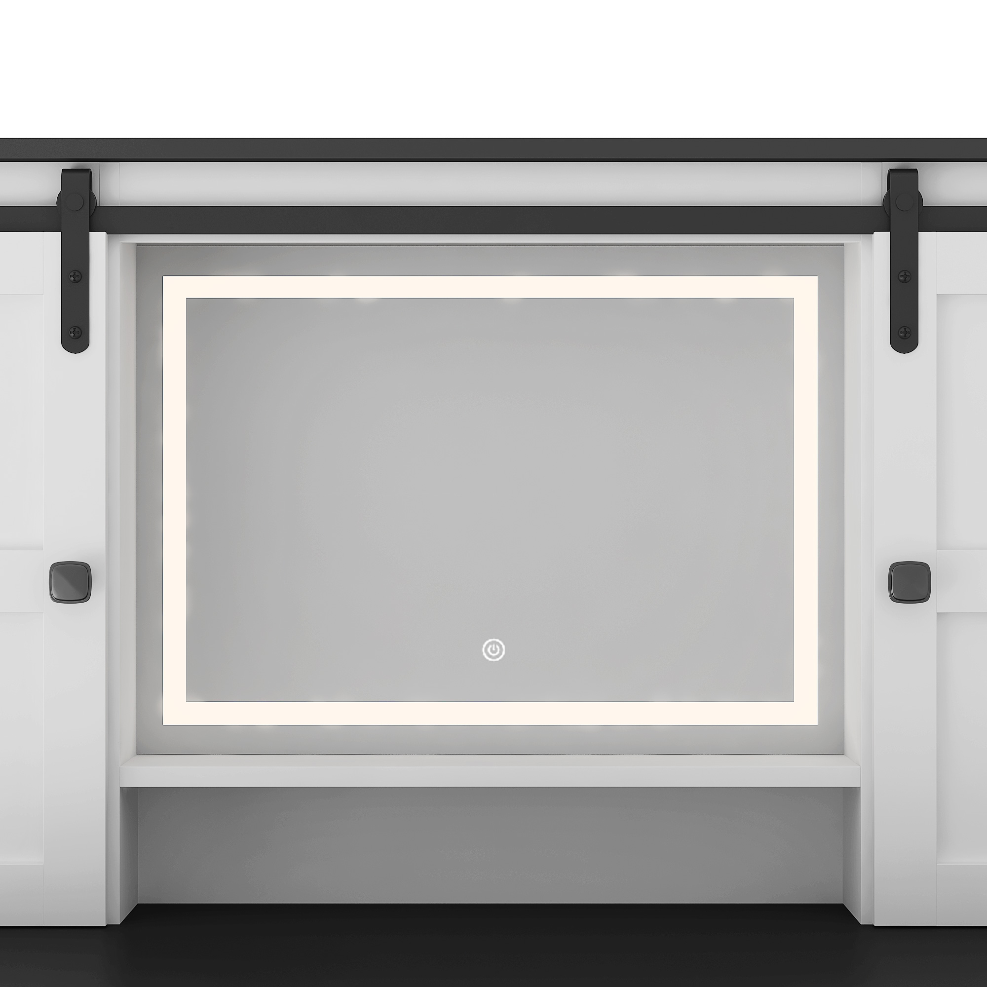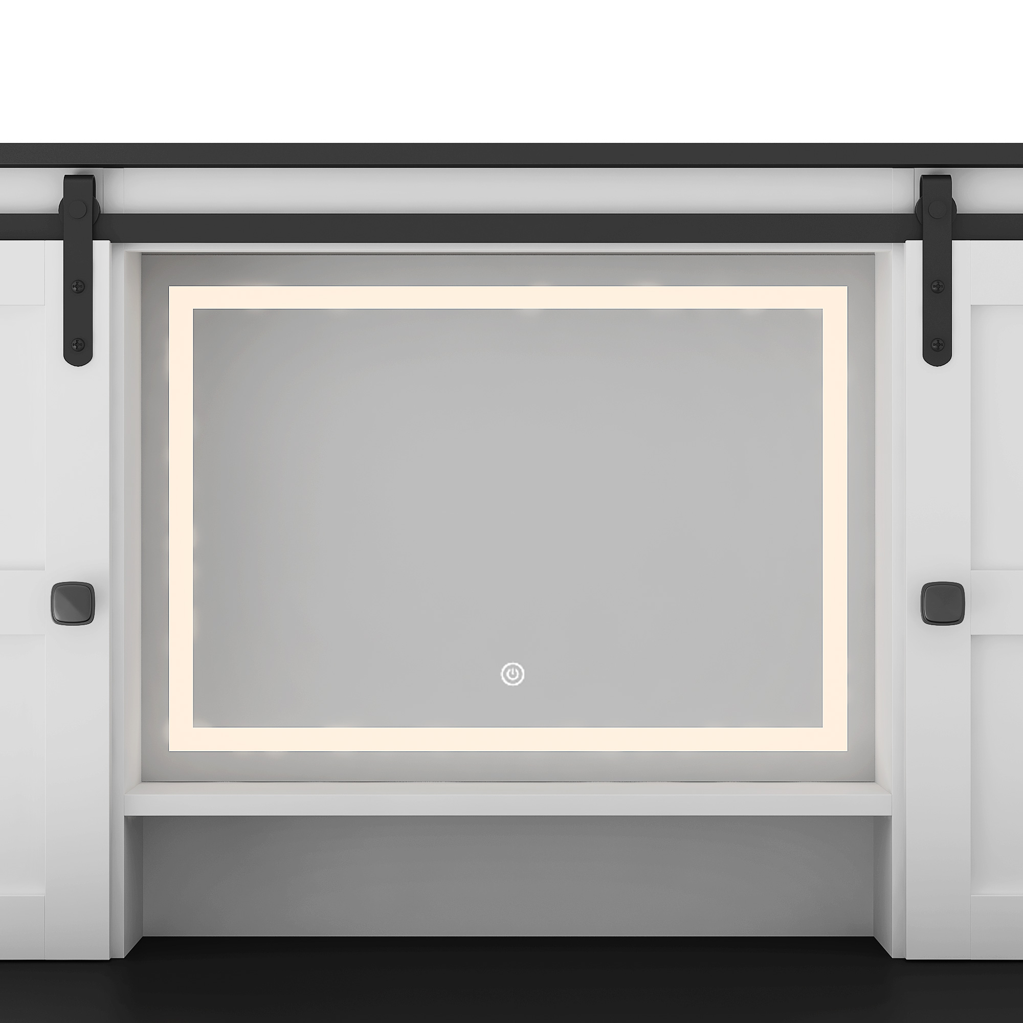 Farmhouse Dressing Table Makeup Table, Wide Dressing Table With Lighted Mirror And Makeup Drawer, Large Modern Dressing Table Set With Hair Dryer Holder For Bedroom, White