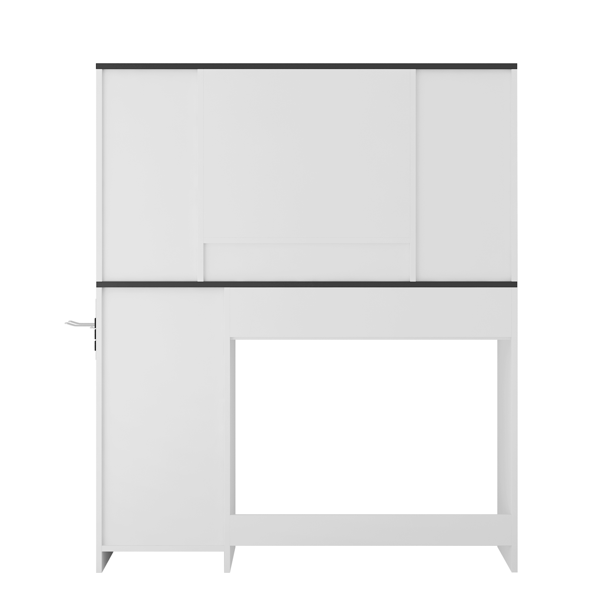 - The top door panel can slide freely, and the side cabinets and open storage cabinets are equipped with adjustable shelves for flexible storage.