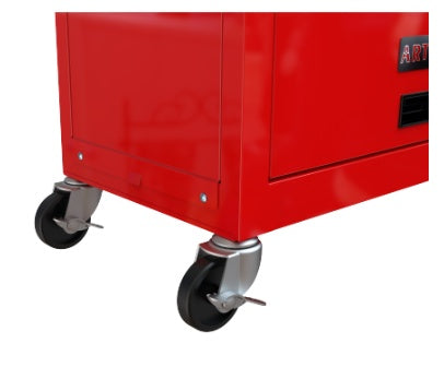 - The tool trolley is equipped with a total of 8 drawers and a large storage space with a tool box. The tool box is also lockable and can be used as a removable, attachable and mobile case attachment.