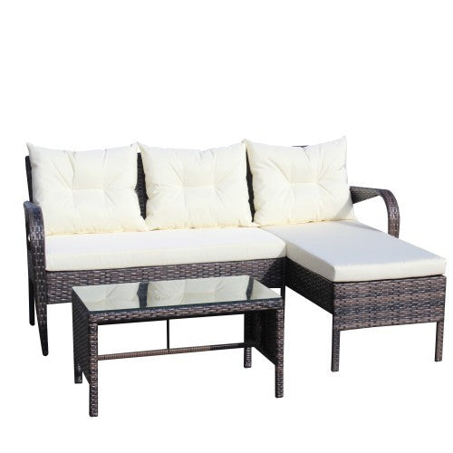 Product Name:Outdoor patio Furniture sets 3 piece Conversation set wicker Ratten Sectional Sofa With Seat Cushions(Beige Cushion)