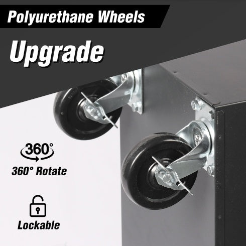 - Easy to Move: Our rolling tool box has 4 steering wheels, 2 of which with parking brakes, so you can move the trolley freely in the garage, but also stop in one place. The tool cabinet with 360° flexible and sturdy universal wheels, rolling tool chest cart are padded and smooth ball-bearing drawer slides to reduce slip during movement, protecting tools and reducing noise